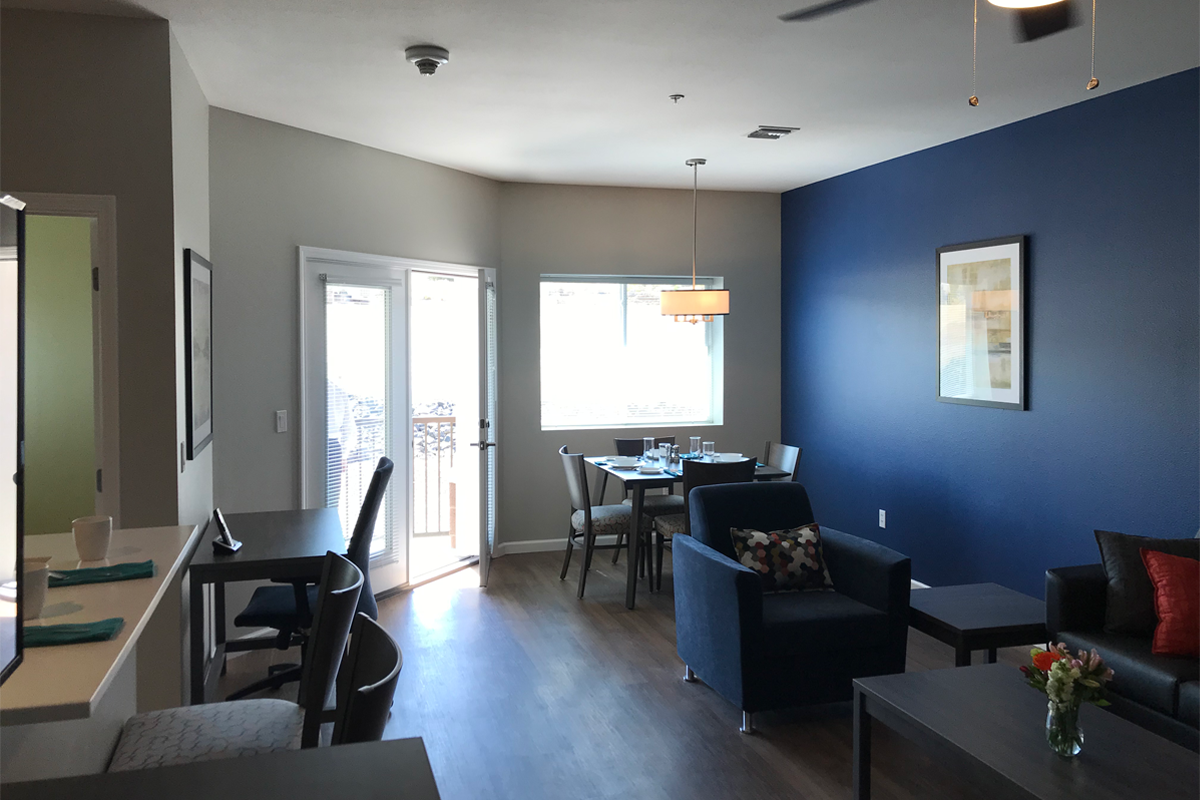 With each site adapt on the lessons learned during the design of the original Kayenta and the Crownpoint apartments were implemented. A new standard of elegance - without being ostentatious - was set through improvements to the plan and living space in the efficiency and accessible units. This included eliminating all high-maintenance items and simplifying the color pallet to reflect the local region and culture. The site-adapt also included a commercial laundry, staff restroom, and local storage that can be converted to on-site offices.