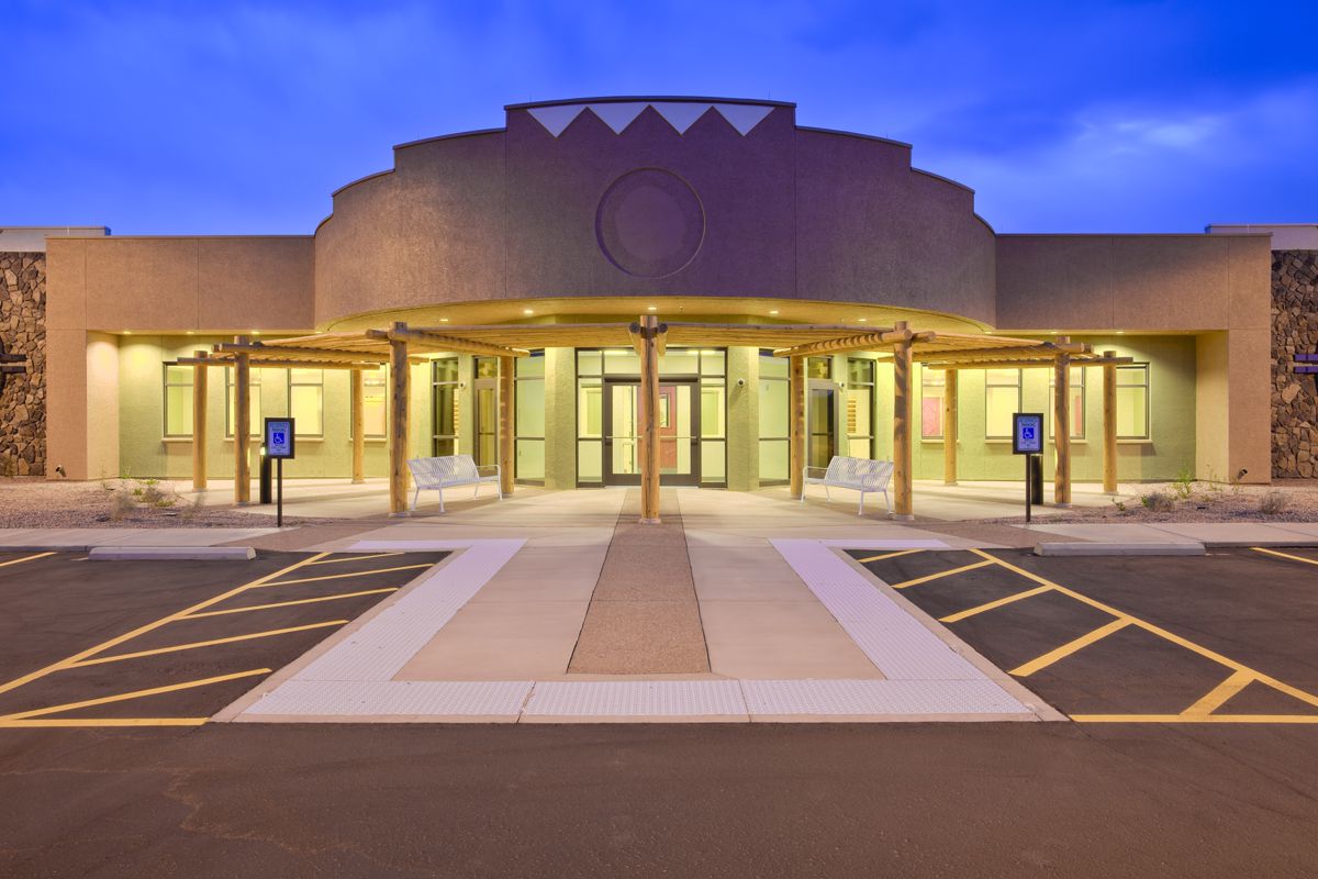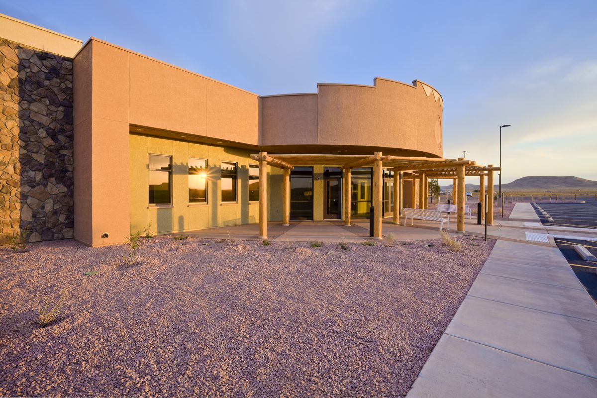 The first court facility ever designed and constructed on the Navajo Nation celebrates the formal adoption of Peacemaking by the Tribal Council, the traditional Navajo way of resolving disputes and restoring harmony to the Community. The Dilkon District Court Facility celebrates Peacemaking by providing two Western courtrooms and another equally sized room reserved for Peacemakers from the Community who facilitate interaction between parties.